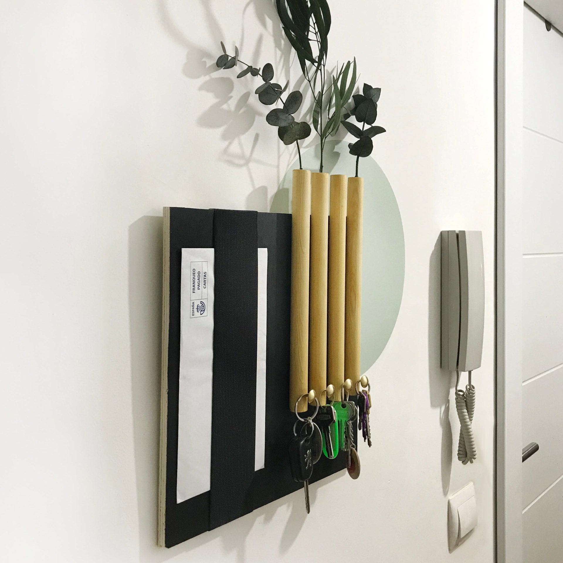 Soporte para colgar llaves, sobres o notas.